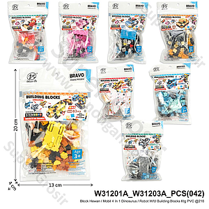 Block Hewan / Mobil 4 In 1 Dinosurus / Robot W/U Building Blocks Ktg PVC @216
