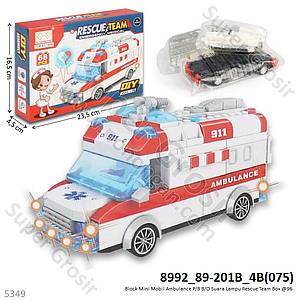 Mini Block Mobil Ambulance P/B B/O Suara Sirine Lampu Rescue Team Box @96