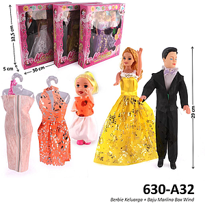 Boneka Barbie Set Keluarga + Baju Marlina Box Wind @44