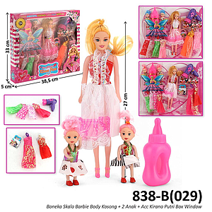 Boneka Barbie Set Anak 2 Pcs + Baju 6 Pcs + Acc Kirana Putri Box Window @44