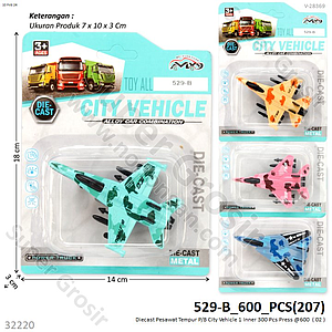 Diecast Pesawat Tempur P/B City Vehicle 1 Pack 6 Pcs 1 Inner 300 Pcs Press @600