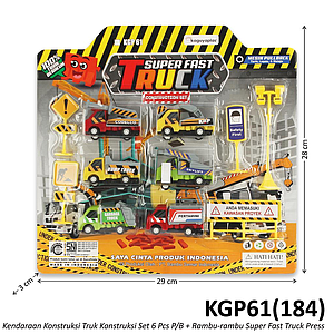 Truk Konstruksi Set 6 Pcs + Acc Rambu-Rambu P/B Super Fast Truck Press @108