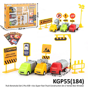 Truk Konstruksi 3 Pcs P/B dan Rambu-rambu Super Fast Truck Construction Set Box Window @68