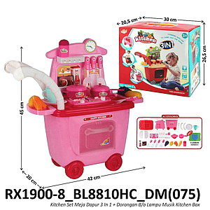 Kitchen Set Meja Dapur 3 In 1 + Dorongan B/o Lampu Musik Kitchen Box @16
