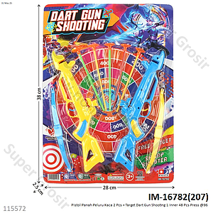 Pistol Panah Peluru Kaca 2 Pcs + Target Dart Gun Shooting 1 Inner 48 Pcs Press @96