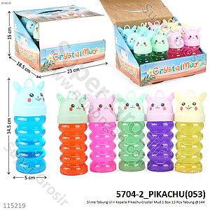 Slime Tabung Ulir Kepala Pikachu Crystal Mud 1 Box 12 Pcs Tabung @144