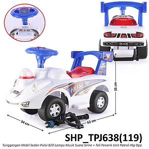 Tunggangan Mobil Jeep Polisi + Sandaran Dorong dan Tali Penarik B/O Musik Suara Lampu Ktg Opp @8