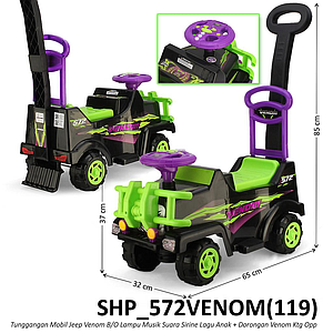Tunggangan Dorong Mobil Jeep Venom B/O Suara Sirine Musik Lagu Anak Lampu Ktg Opp @4
