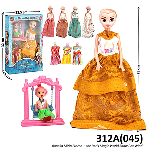 Boneka Barbie Elsa Frozen Ayunan Baju dan Anak Paris Magic World Snow Box Window @72
