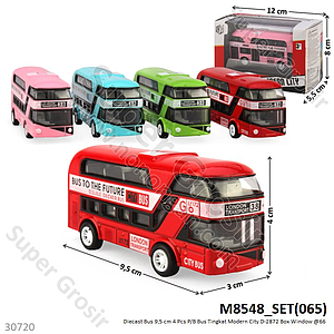 Diecast Bus Tingkat 10 cm P/B Modern City D-2872 1 Set 4 Pcs Box Window @264