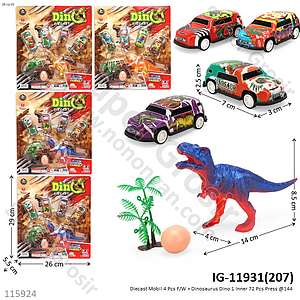 Diecast Mobil 4 Pcs F/W + Dinosaurus Dino 1 Inner 72 Pcs Press @144