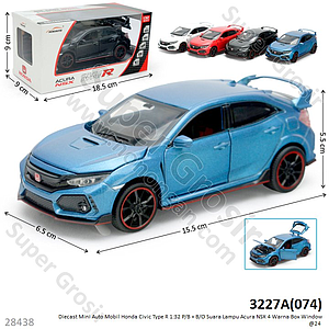 Diecast Mobil Honda Civic Type R 1:32 Mini Auto P/B + B/O Suara Lampu Acura NSX 4 Warna Box Window @24