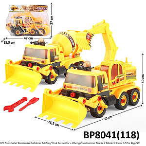 Truk Konstruksi Dobel Tronton F/W DIY + Obeng Construction Trucks 2 Model (Bulldozer Molen / Excavator) 1 Inner 12 Pcs Ktg PVC @24