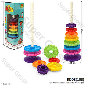 Mainan Edukasi Spin Wheels 7 Roda Gigi Spin and Stack Box Window @36