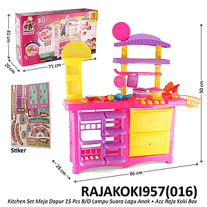 Kitchen Set Meja Dapur 15 Pcs B/O Lampu Suara Lagu Anak + Acc Raja Koki Box @6
