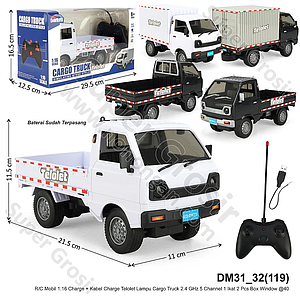 R/C Mobil Suzuki Carry Box Charge + Kabel Charge Suara Telolet Lampu Cargo Truck 2.4 GHz 5 Channel 1 Ikat 4 Pcs Box @36