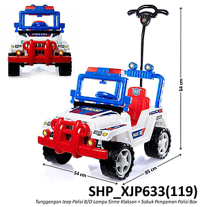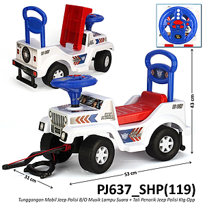 Tunggangan Mobil Jeep Polisi + Sandaran Dorong dan Tali Penarik B/O Musik Suara Lampu Ktg Opp @8