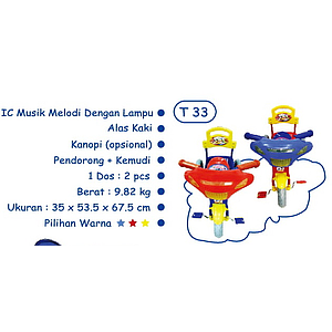 Tunggangan Sepeda Roda 3 Motor Dorong B/O Musik Lagu Anak Gesit 2 Warna Ktg PVC @6