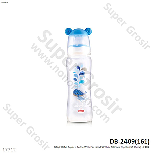 8Oz/250 Ml Square Bottle With Ear Hood With Jv Silicone Nipple (30 Shore) - 2409